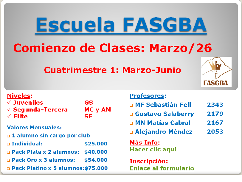 Sistema Suizo a 5 rondas , a jugarse los miércoles desde l 15 de abril, siempre a las 19 horas. Requiere canon FADA pagado.