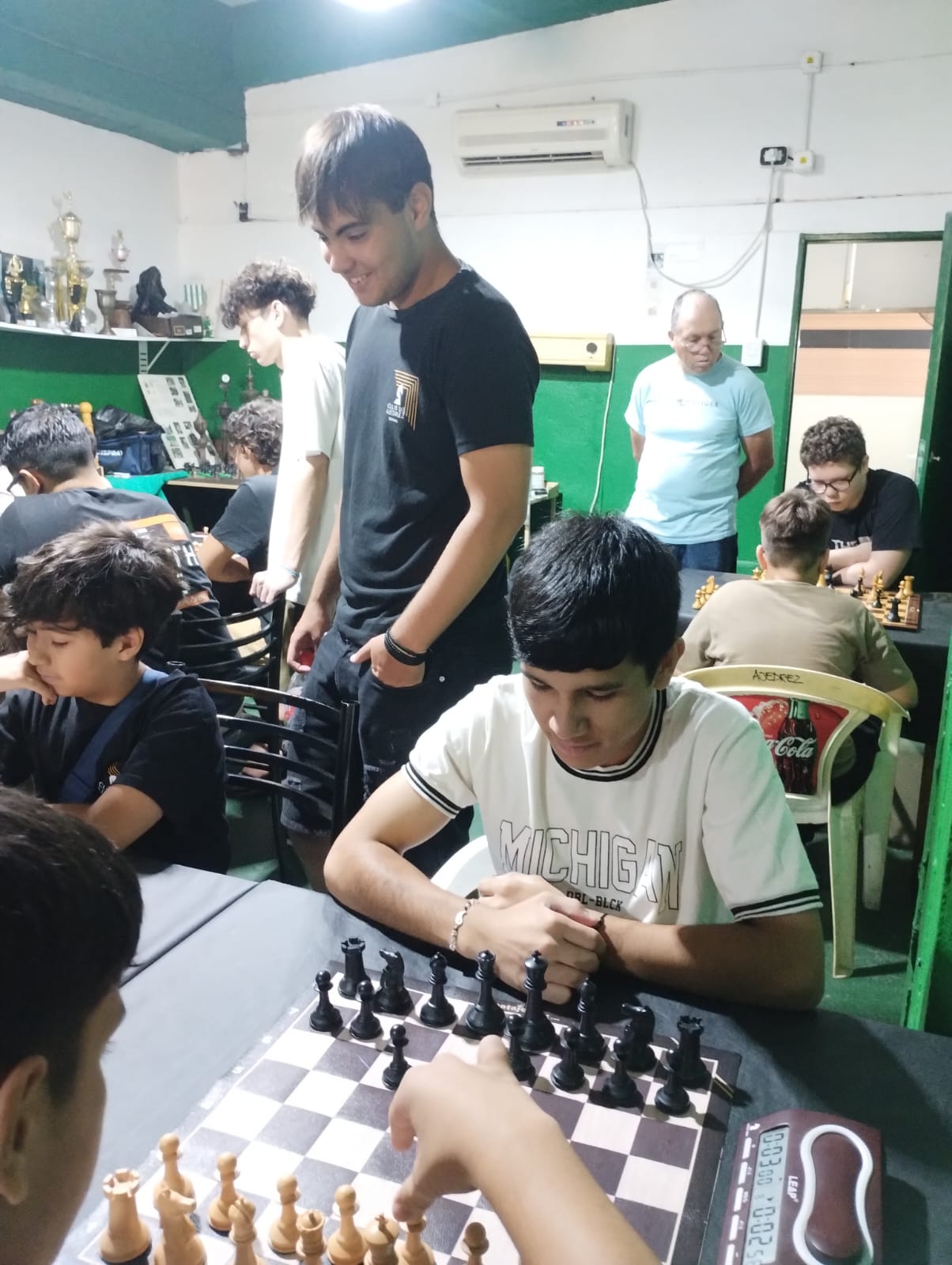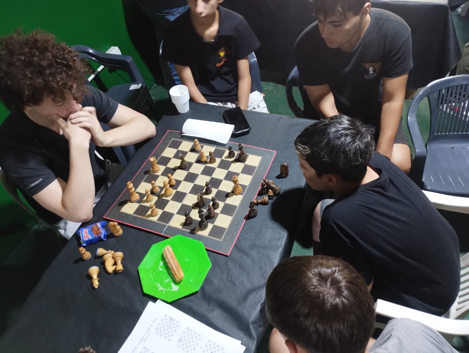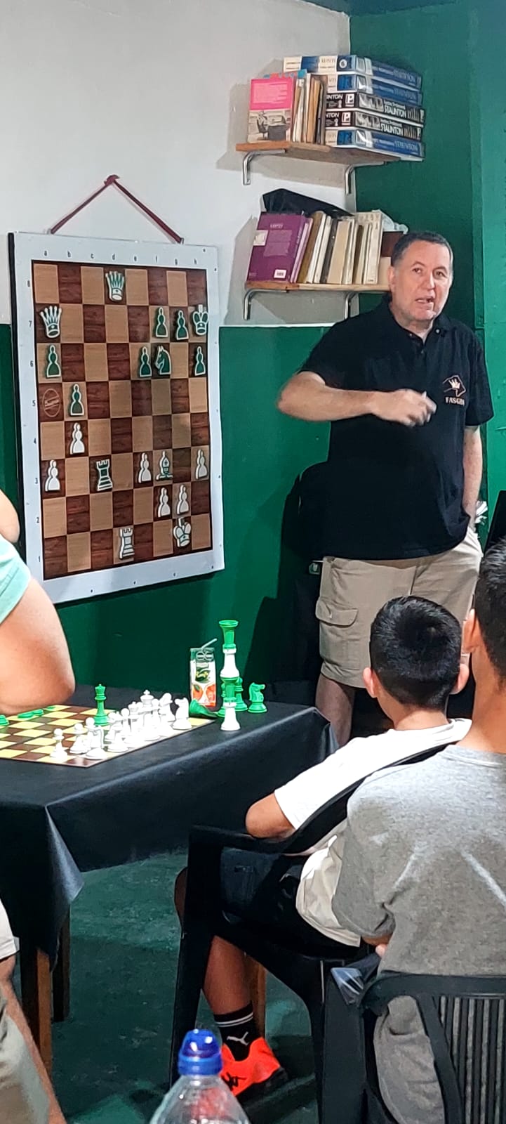 La actividad se dividió en 3 bloques temáticos: primero Gustavo utilizó una complejísima posición para generar un rico debate en torno al razonamiento y toma de decisiones ajedrecística, luego este servidor presentó 3 finales básicos de torre que los chicos no pueden dejar de conocer de cara a los CAM (posición Philidor, puente de Lucena y posición Vancura) y que sirvieron como preludio a la Escuela de la Federación próxima a iniciar actividades formales y finalmente cerró Darío Durán con una charla de aspectos reglamentarios que cautivó a la juvenil audiencia.
