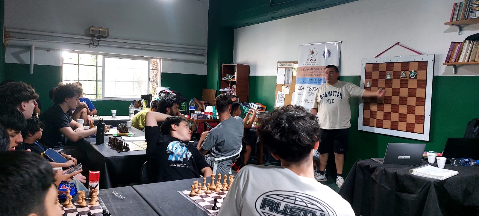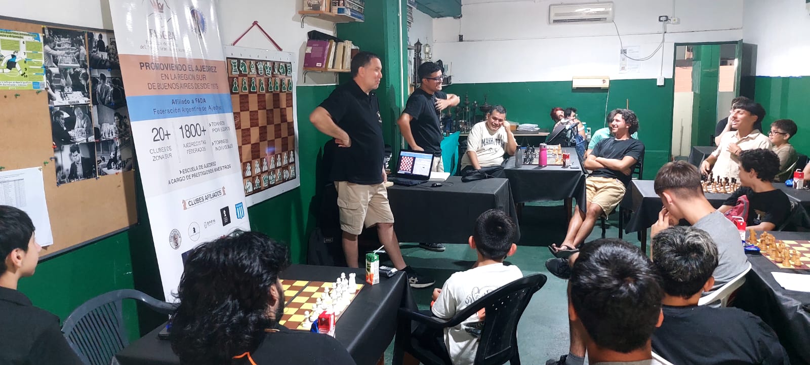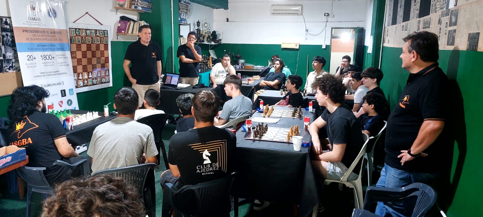 Por iniciativa de Gustavo Salaberry, este sábado 21.02 en el espacio de 10:00-14:00 horas, se celebró el primer campamento ajedrecístico de la Federación en las instalaciones del Club Atlético Banfield, un evento inédito en nuestra rica historia. Se acercaron 25 juveniles de todo el arco de clubes que componen Fasgba, que compartieron una hermosa mañana a puro ajedrez y aprendizaje. Participaron además distinguidos profes de varios clubes de la Federación y se contó con la impecable organización de Laura Díaz e Ignacio Quiro Díaz.