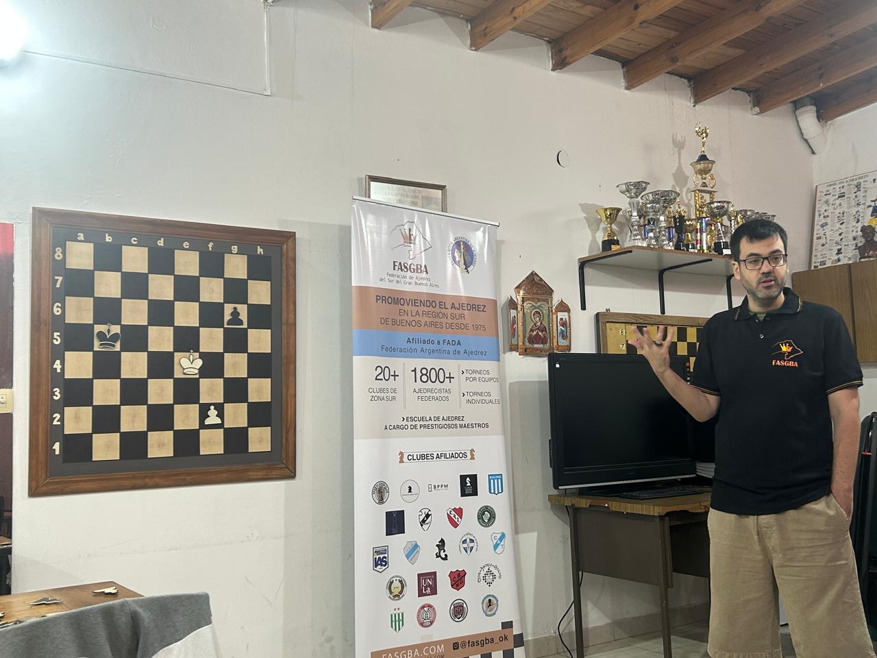 Aprovechando la estancia pascual en Buenos Aires del profe estrella de la Federación, el instructor y maestro FIDE Sebastián Fell, se coordinó un encuentro presencial en las instalaciones del Club de Ajedrez Bernal, con motivo de la cita de cada sábado.